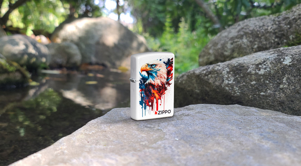 Il design Color Image, vibrante e dettagliato, raffigura un’aquila calva in una scena che ricorda un dipinto a mano, donandogli un tocco artistico e unico. Accendino antivento Zippo Animals a benzina ricaricabile, antivento, made in the USA. Viene confezionato in una scatola regalo. Per prestazioni ottimali, utilizzare il fluido di ricarica originale per accendini Zippo.