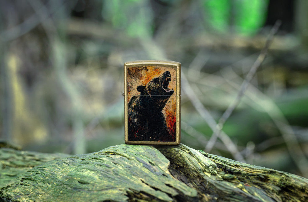 Un possente orso ruggisce con forza primordiale su questo accendino Antique Brass. Il design ipnotico, realizzato con la tecnica Color Image, si staglia su uno sfondo infuocato che esalta l’intensità della scena. La finitura in ottone anticato aggiunge un tocco vintage e raffinato. Accendino antivento Zippo Animals a benzina ricaricabile, antivento, made in the USA. Viene confezionato in una scatola regalo. Per prestazioni ottimali, utilizzare il fluido di ricarica originale per accendini Zippo.