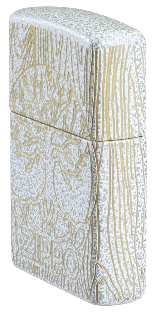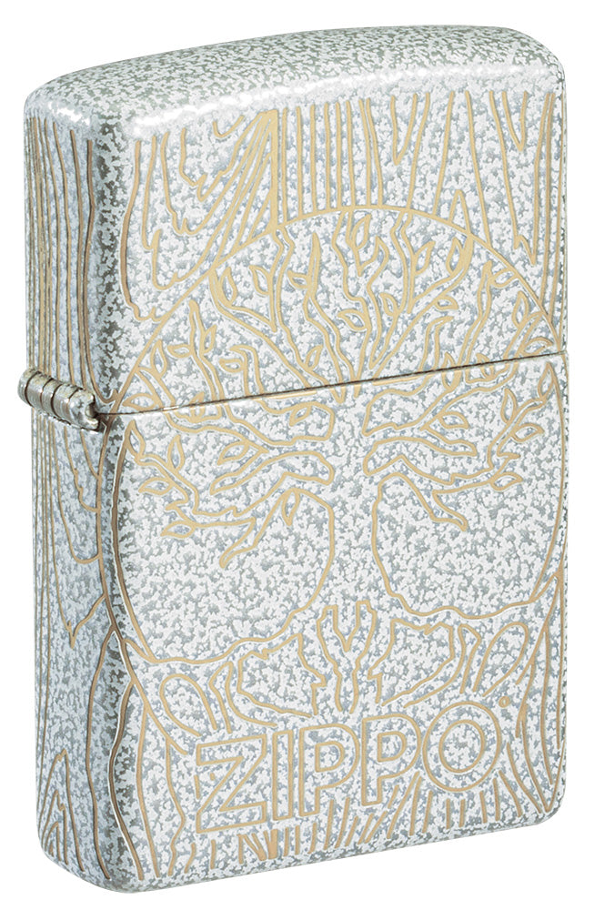 L’iconico Albero della Vita è inciso con precisione sulla superficie di questo accendino Glacier. Il design Laser 360° riproduce le venature del legno su lati e retro, creando un affascinante contrasto con la finitura screziata. Accendino antivento Zippo Laser 360° a benzina ricaricabile, antivento, made in the USA. Viene confezionato in una scatola regalo. Per prestazioni ottimali, utilizzare il fluido di ricarica originale per accendini Zippo.