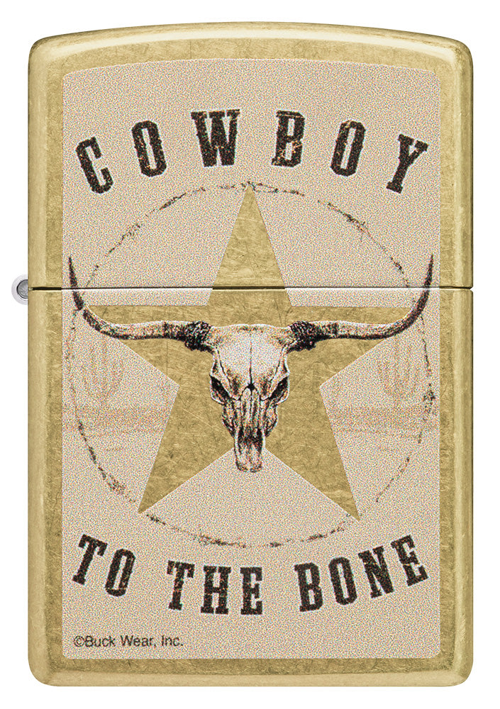 Ti presentiamo Buck Wear™ un marchio di abbigliamento che unisce orgoglio, patriottismo e amore per la vita all’aria aperta in ogni suo prodotto. Questo classico accendino Street Brass presenta un design a colori con la scritta "Cowboy to the Bone" attorno a un teschio di Texas Longhorn. Accendino antivento Zippo Buck Wear a benzina ricaricabile, antivento, made in the USA. Viene confezionato in una scatola regalo. Per prestazioni ottimali, utilizzare il fluido di ricarica originale per accendini Zippo.