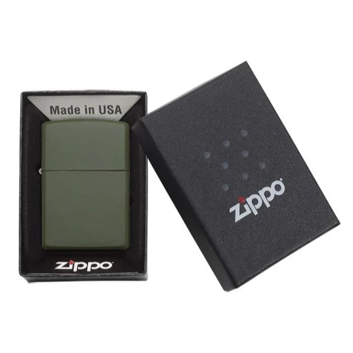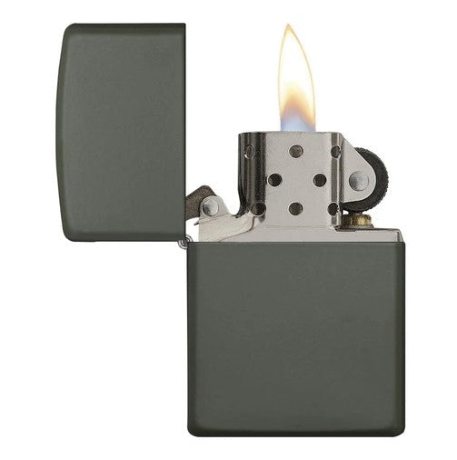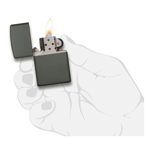Popolare accendino antivento Classic Matte Green. Gli accendini mate hanno una cerniera laserata e un timbro sul fondo. Viene confezionato in una scatola regalo. Per prestazioni ottimali, utilizzare il fluido di ricarica originale per accendini Zippo.