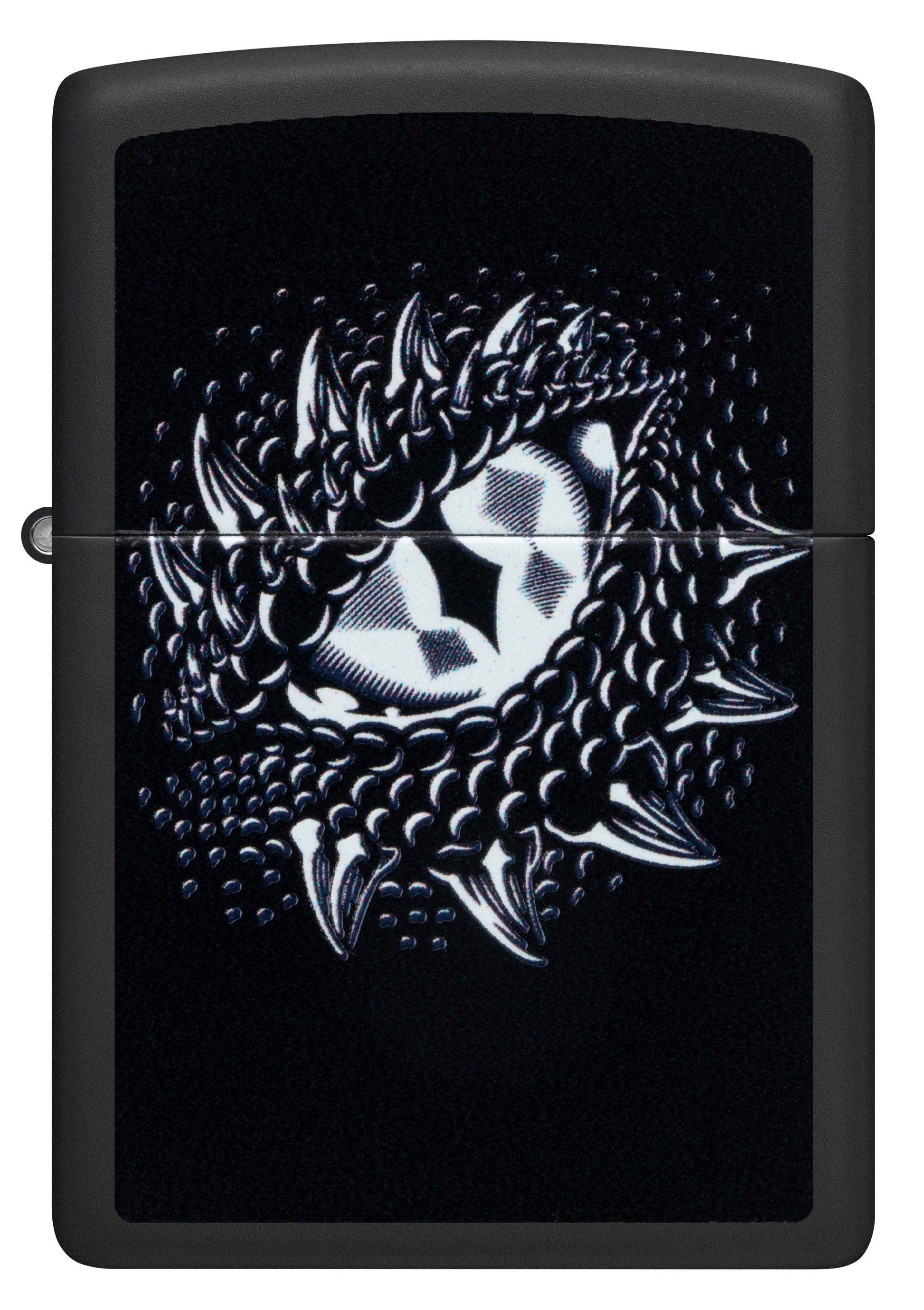 Uno splendido occhio di drago affiora dalla superficie di questo accendino Black Matte. Il design Color Image si illumina sotto la luce ultravioletta grazie al nostro esclusivo processo Black Light. Viene confezionato in una scatola regalo. Per prestazioni ottimali, utilizzare il fluido di ricarica originale per accendini Zippo.