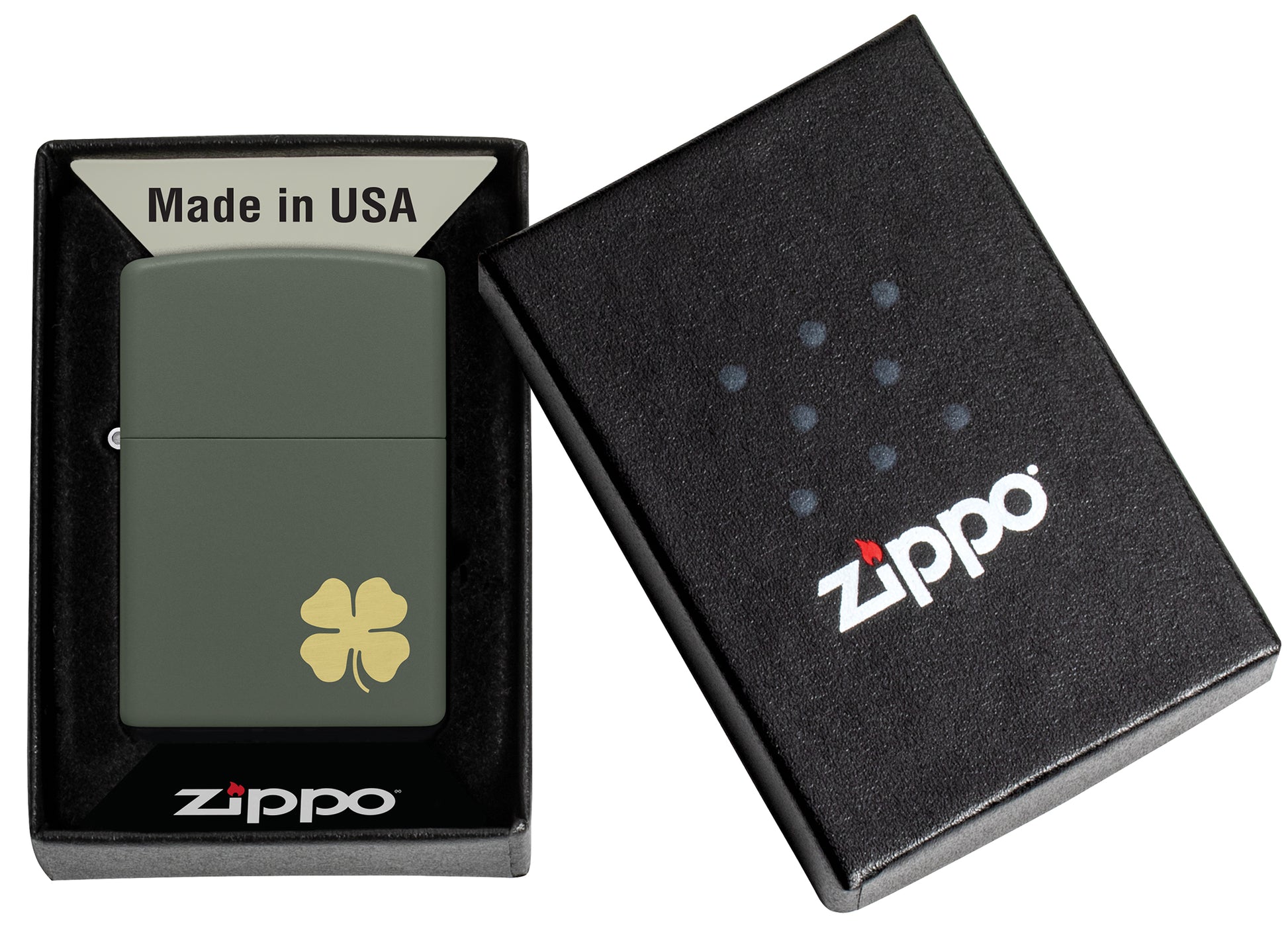 La fortuna degli irlandesi ora arriva con una garanzia a vita! Questo splendido accendino verde opaco presenta un quadrifoglio inciso al laser in modo da poter portare un po' di fortuna con te ovunque tu vada. Viene confezionato in una scatola regalo. Per prestazioni ottimali, utilizzare il fluido di ricarica originale per accendini Zippo.