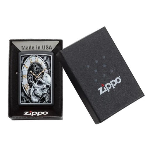 Il tempo scorre. Questo accendino nero opaco presenta un design cupo che ci ricorda che l'orologio non smetterà mai di ticchettare. Gli artisti interni di Zippo continuano a produrre spettacolari opere d'arte originali per adornare i nostri accendini antivento. Disegnato a mano, questo disegno, è stato originariamente creato con penna e inchiostro, quindi trasferito digitalmente con cura per preservare gli intricati strati di dettagli e ombreggiature da riprodurre con il processo di imaging a colori di Zippo. Viene confezionato in una scatola regalo. Per prestazioni ottimali, utilizzare il fluido di ricarica originale per accendini Zippo.