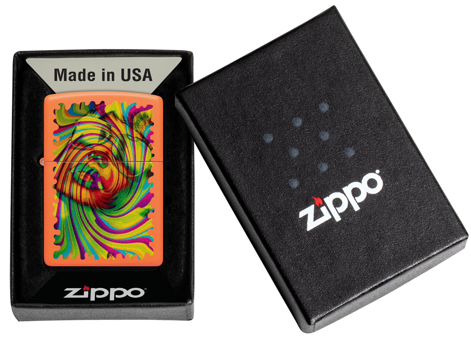 Non puoi perderti questo audace e giocoso accendino Orange Matte. Il vorticoso design Color Image è incentrato su un ritratto pop art dai colori vivaci. Viene confezionato in una scatola regalo. Per prestazioni ottimali, utilizzare il fluido di ricarica originale per accendini Zippo.